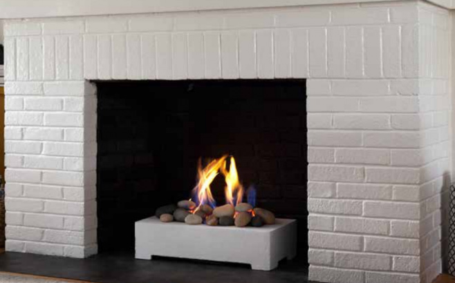 Log sets are not the only option, when it comes to having a vent free technology installed inside of an existing wood burning fireplace or a vent free firebox. For people who prefer a modern look to an imitation of a conventional wood burning fire there are options of contemporary burners with glass and river rocks along with simple "linear" burners. Regardless of their different look these burners function the same way as traditional log sets, hence all the above mentioned characteristics, requirements and restrictions apply to them as well.