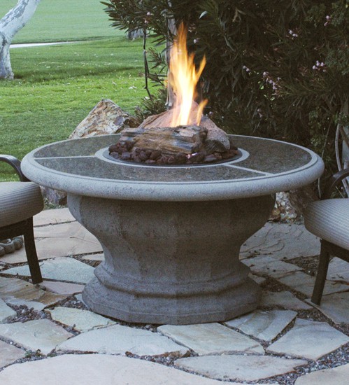 Firetable media choices are not limited to conventional logs. To add a "twist" to a firetable look and make it fit a particular style, one can choose from lava rock, river rock or even glass of different colors, shapes and sizes.