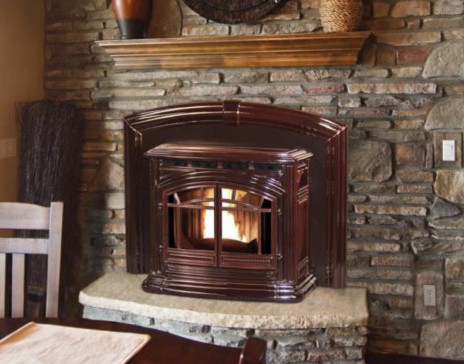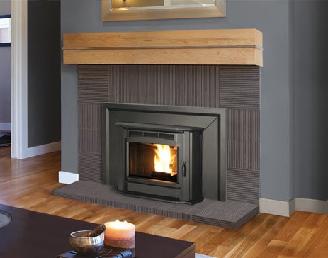 A pellet burning insert is very similar to a pellet burning stove, but made specifically to be installed inside of an existing fireplace to increase its efficiency. Pellet inserts are made without legs or pedestal and sit right on the floor of the fireplace. They also feature a surround that covers the gaps between the insert itself and the fireplace opening.